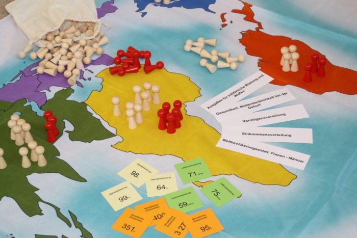 Große Zahlen haben es an sich, dass wir sie uns kaum vorstellen können. Das WeltSpiel ermöglicht es, die Verteilung der Weltbevölkerung auf die verschiedenen Kontinente bzw. Regionen und die Verteilung des Welteinkommens – wenn auch vereinfacht – darzustellen und im Sinn des Wortes zu „begreifen“.