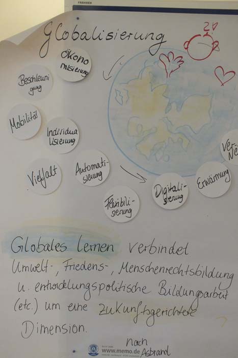 Die Multiplikatorenschulung bot eine grundlegende Einführung in das Globale Lernen, die Möglichkeit Material und Methoden zu erproben und in einer begleiteten Praxisphase eine Bildungseinheit mit Schulklassen und Jugendgruppen durchzuführen und so einen Einstieg in die Praxis des Globalen Lernens zu finden.