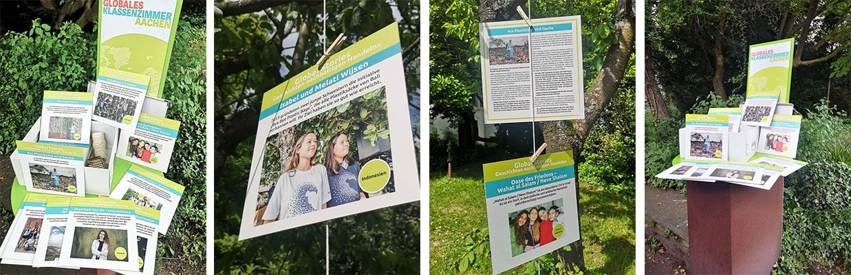 40 Tafeln erzählen Geschichten von Menschen aus verschiedenen Kontinenten, die sich mit all ihrer Energie für Nachhaltige Entwicklung und Frieden einsetzen: