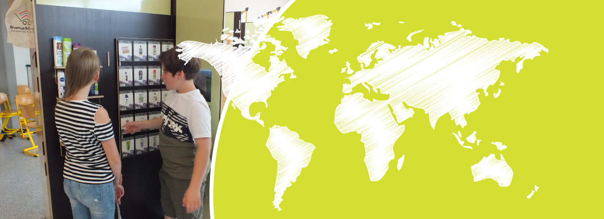 GLOBALER SUPERMARKT ist eine interaktive Lernstation für Schulklassen und Jugendgruppen ab 10 Jahren. In zwei Erlebnisräumen entdecken Kinder und Jugendliche Zusammenhänge zwischen Konsum, Ressourcenverbrauch, Klima und Produktionsbedingungen und lernen Möglichkeiten kennen aktiv zu werden – vom Wissen zum Handeln!