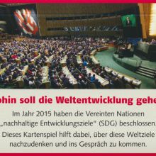 Im Jahr 2015 haben die Vereinten Nationen „nachhaltige Entwicklungsziele“ (SDG) beschlossen. Dieses Kartenspiel hilft dabei, über diese Weltziele nachzudenken und ins Gspräch zu kommen.